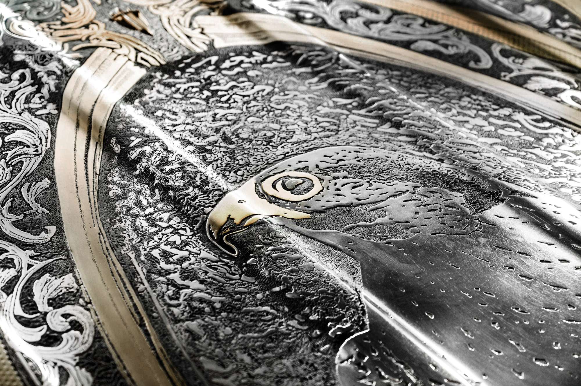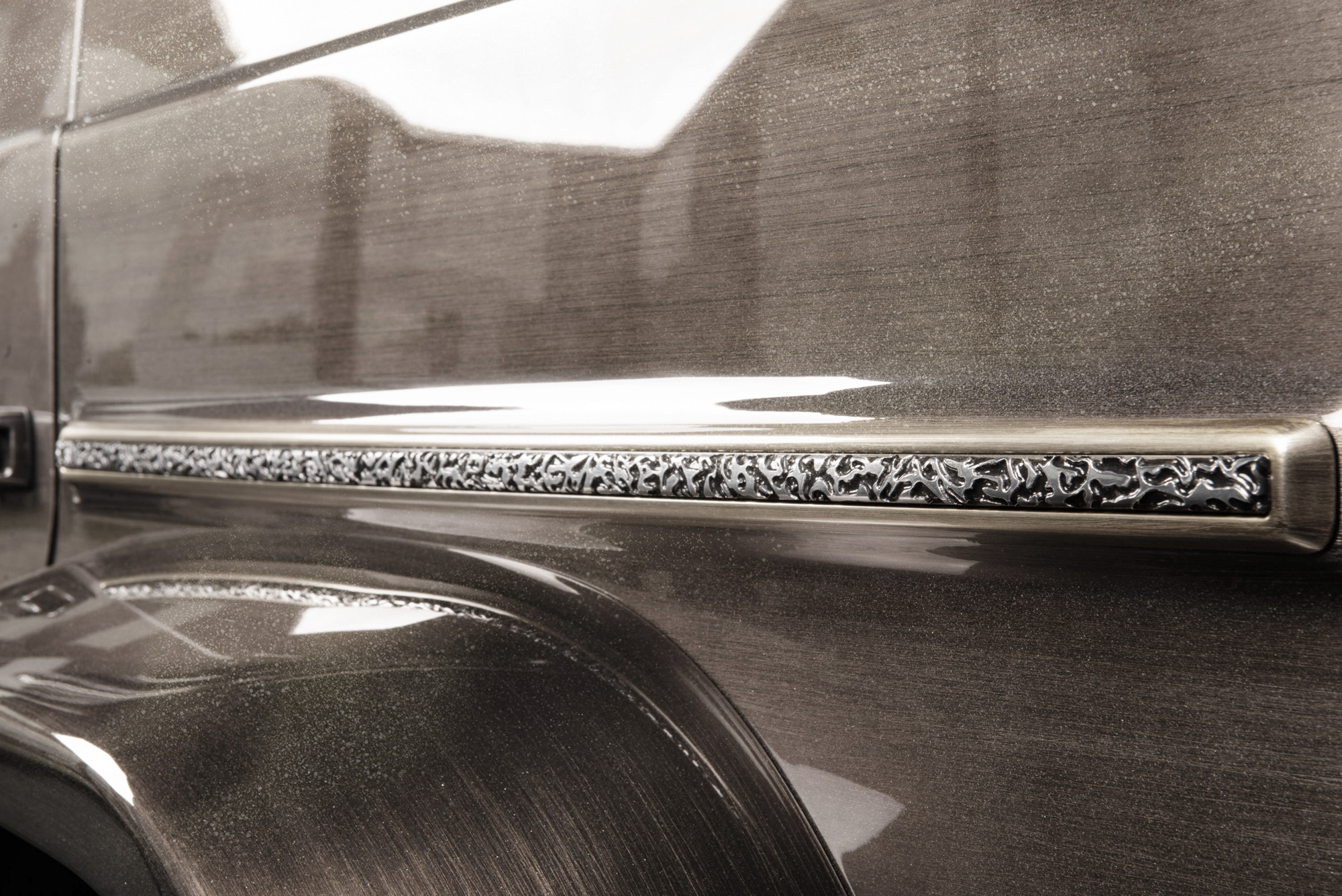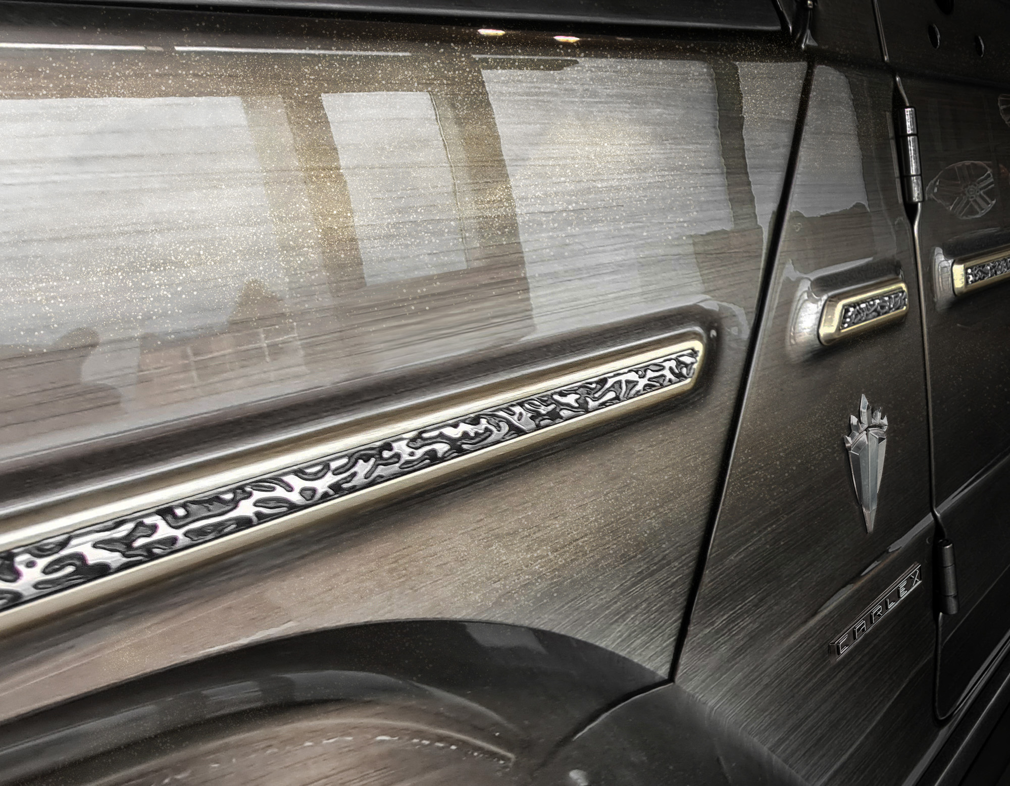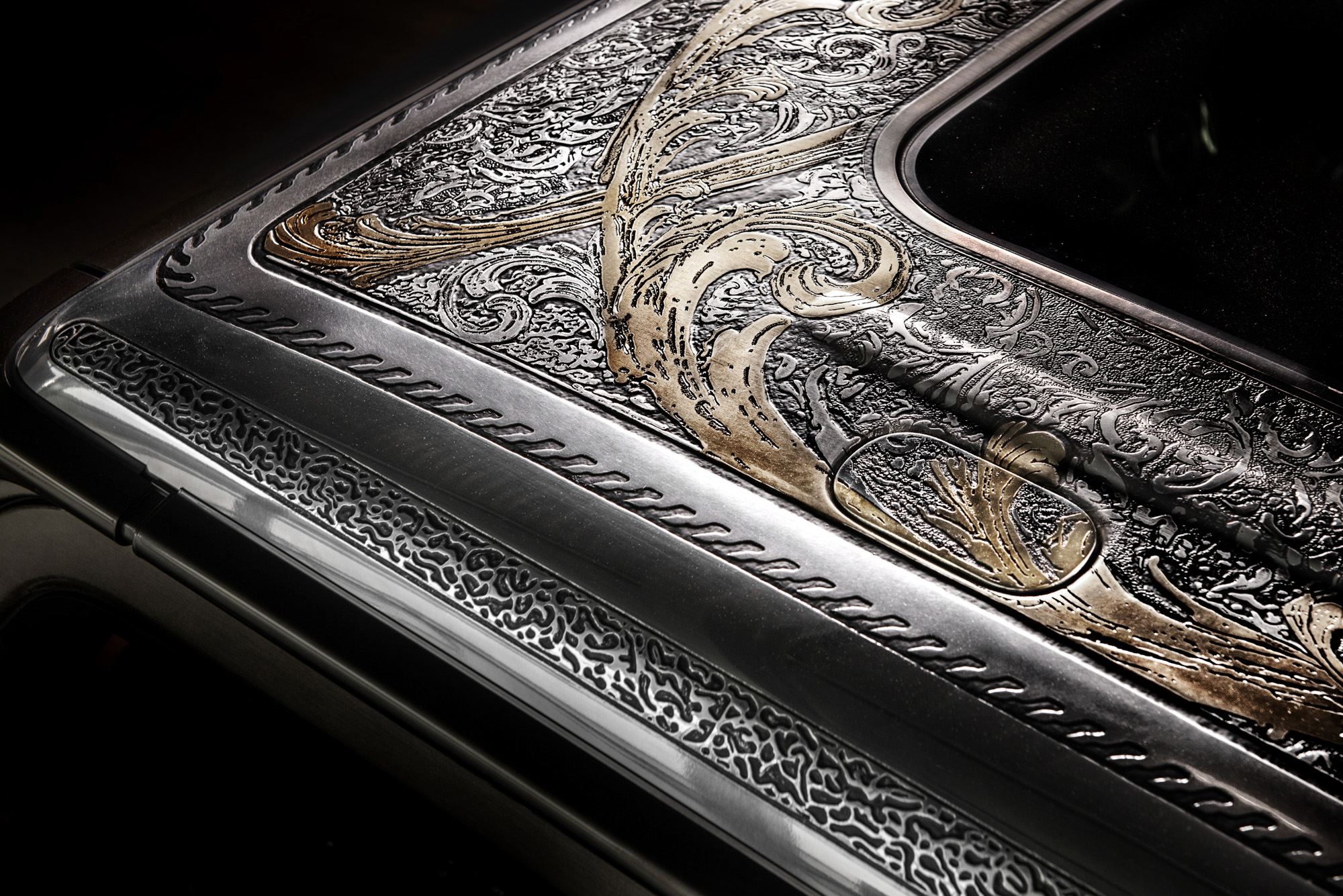 Ten projekt to prawdziwe arcydzieło. Proces powstawania trwał 4 lata. Ręcznie grawerowane wzory na dachu, listwach bocznych i osłonie koła zapasowego zostały podkreślone złotymi akcentami.